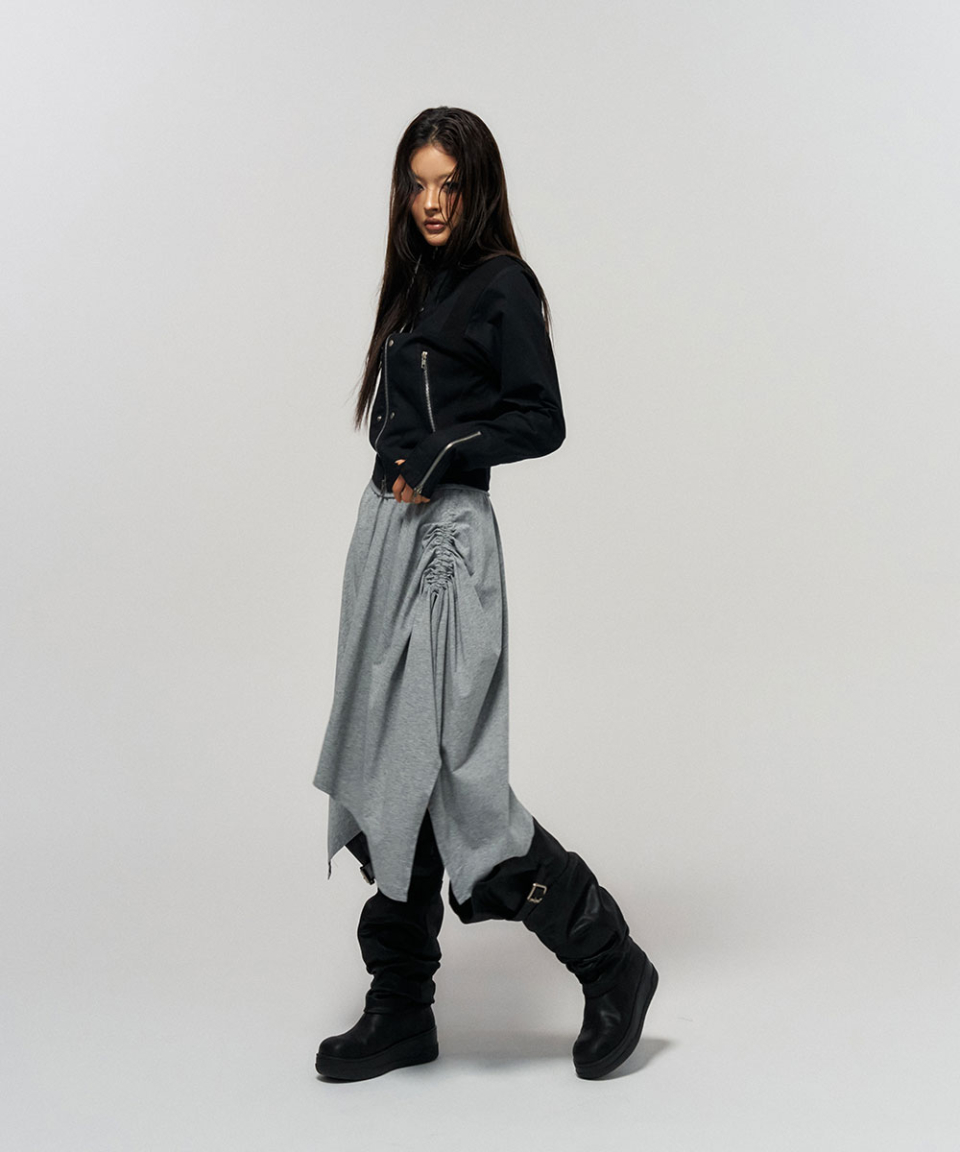 폴드 랩 로우라이즈 트라우저 [차콜]