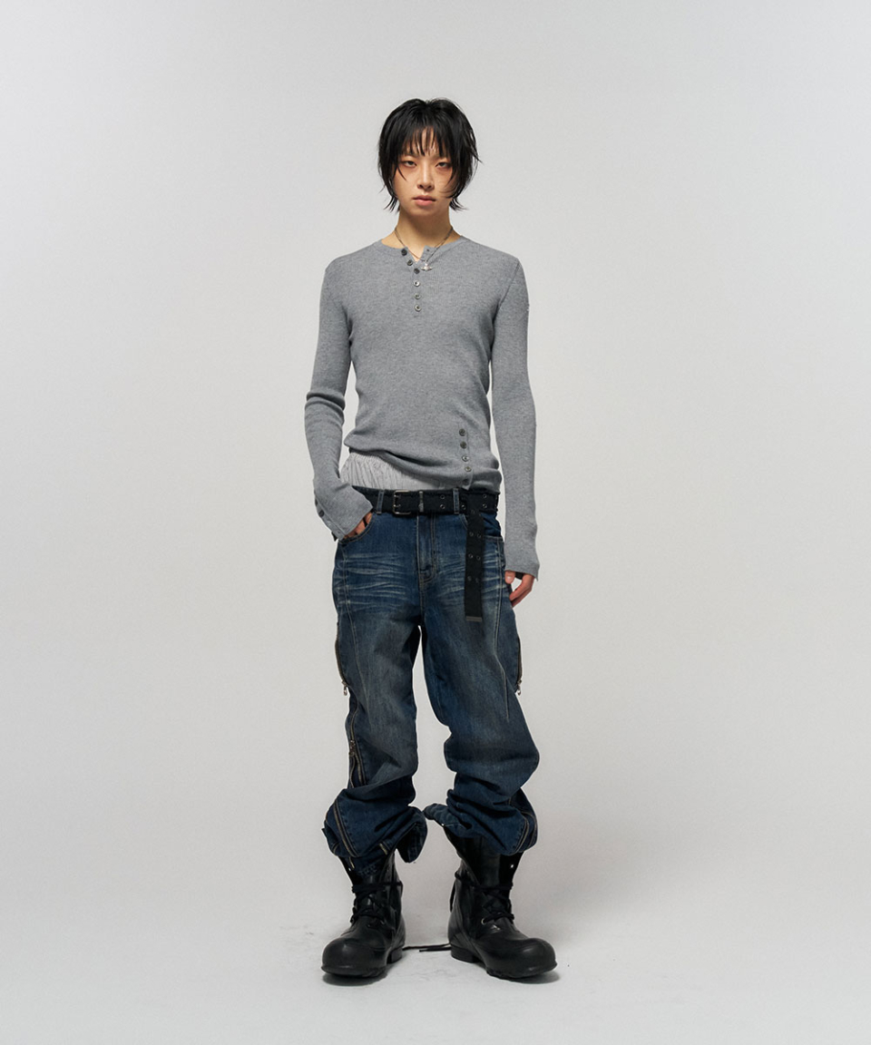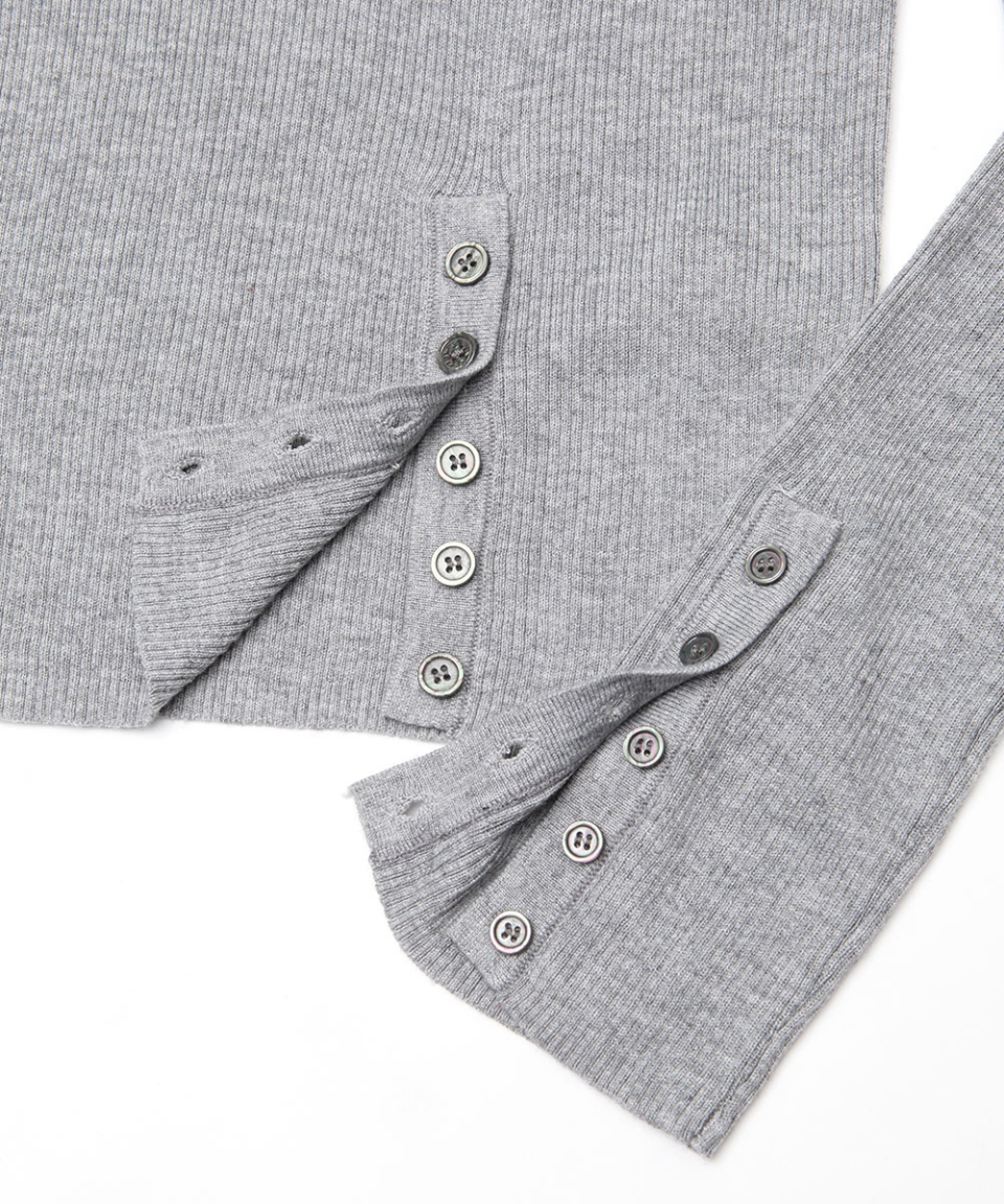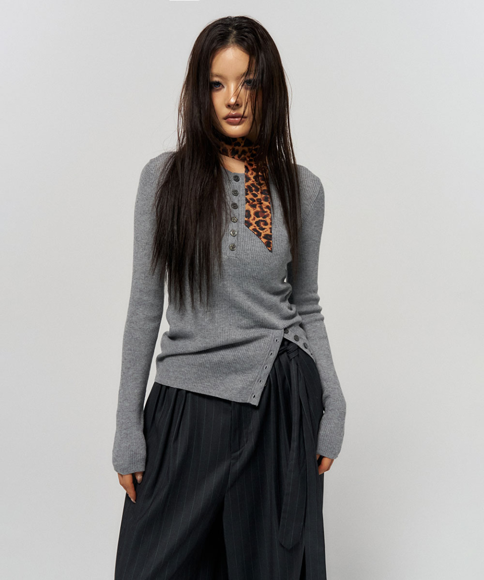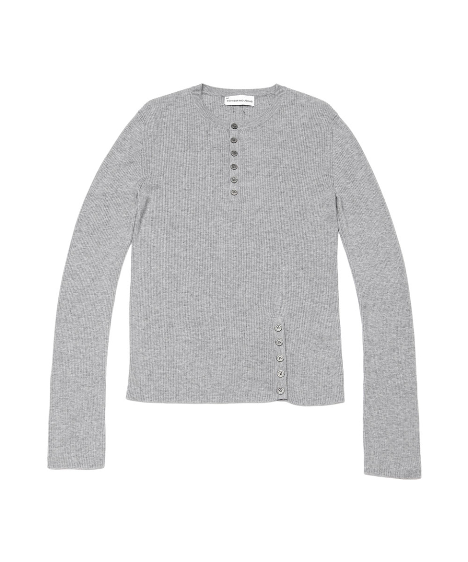 BUTTON SLIT HENLEY KNIT GREY