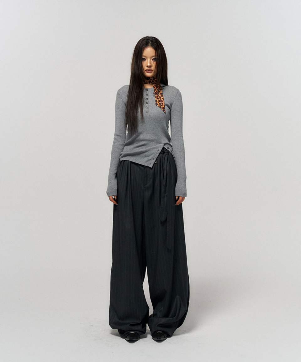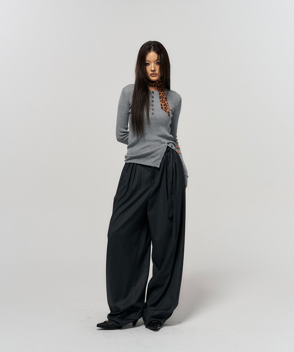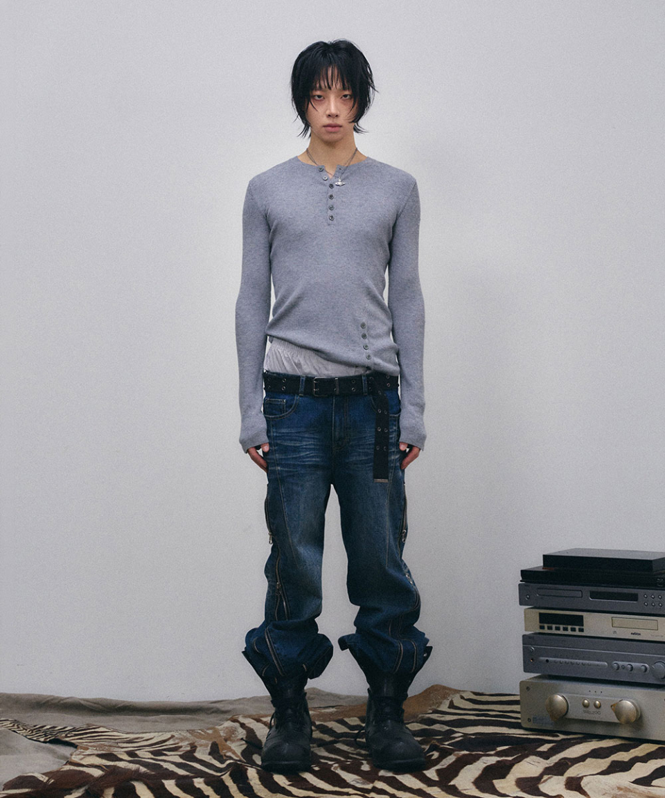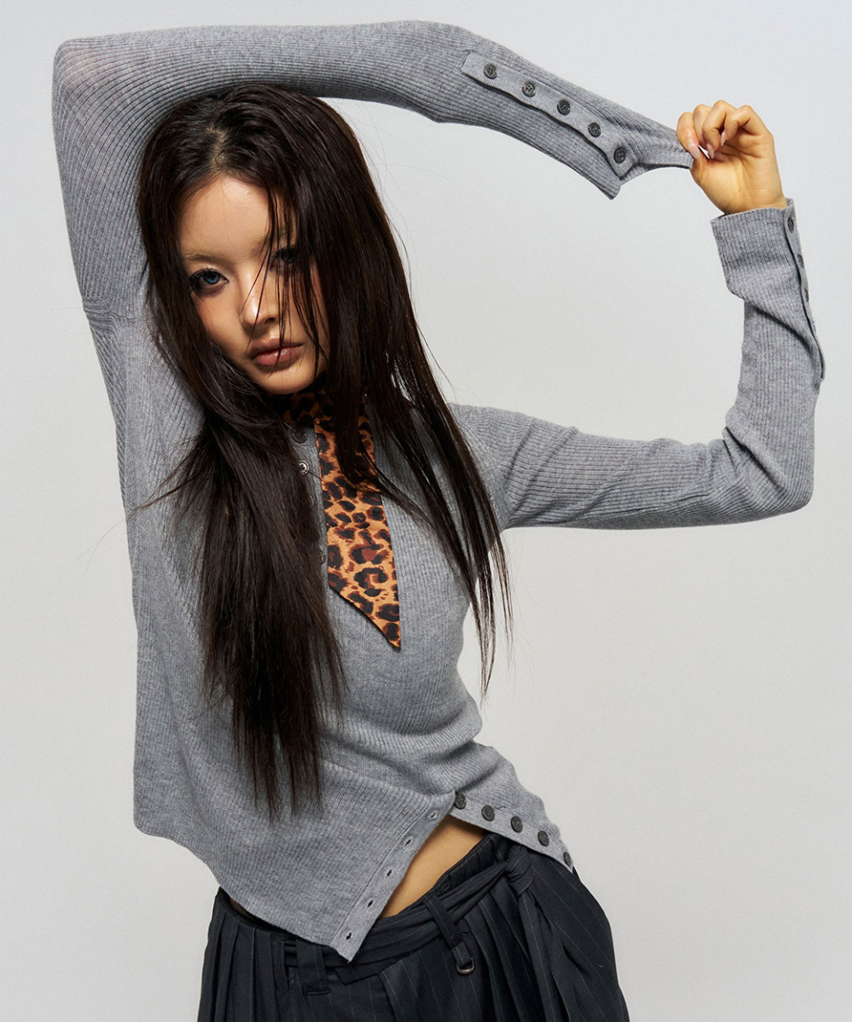 BUTTON SLIT HENLEY KNIT GREY