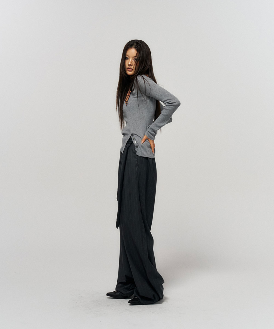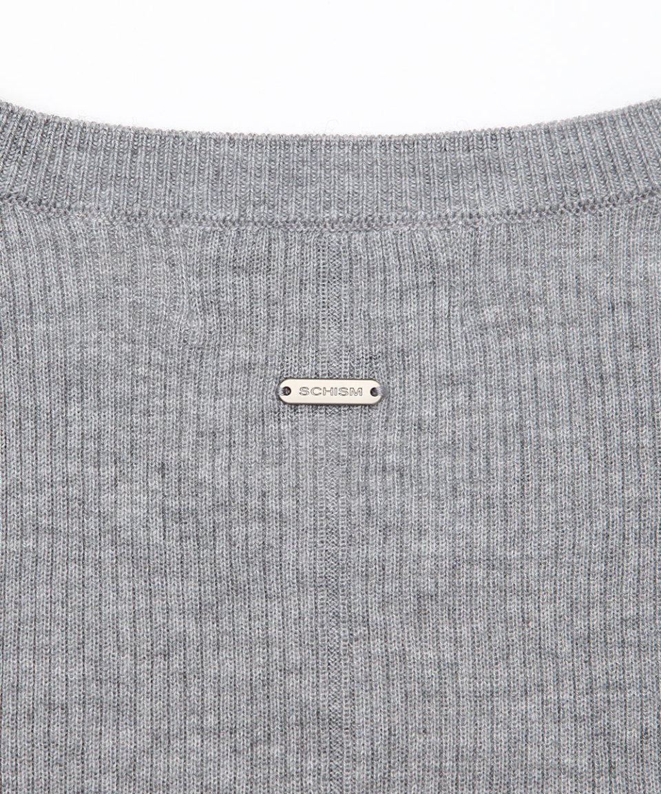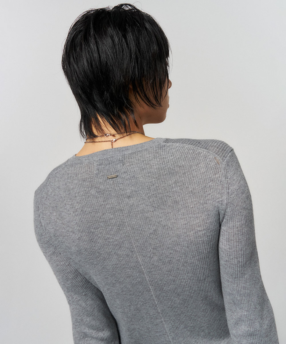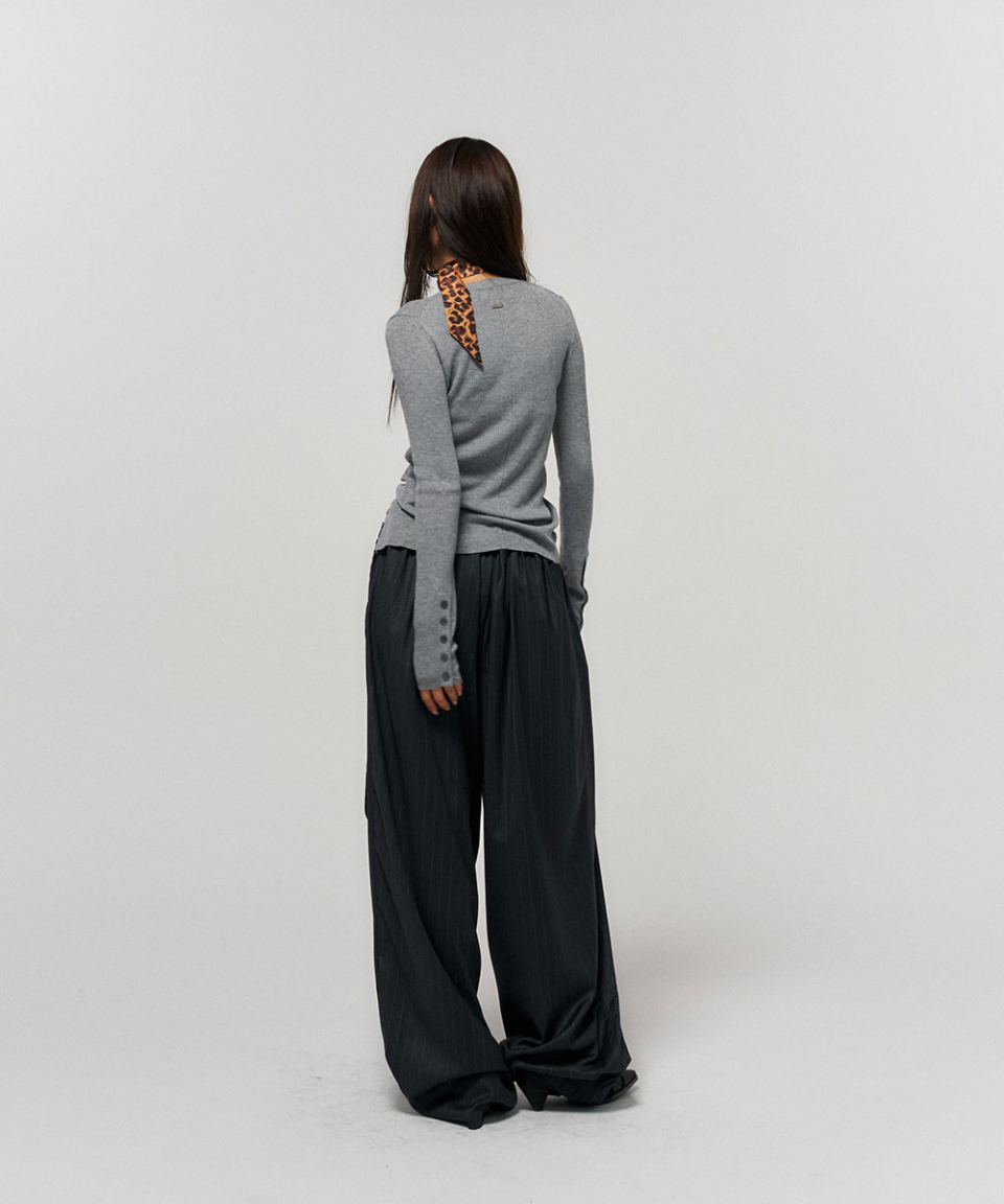 BUTTON SLIT HENLEY KNIT GREY