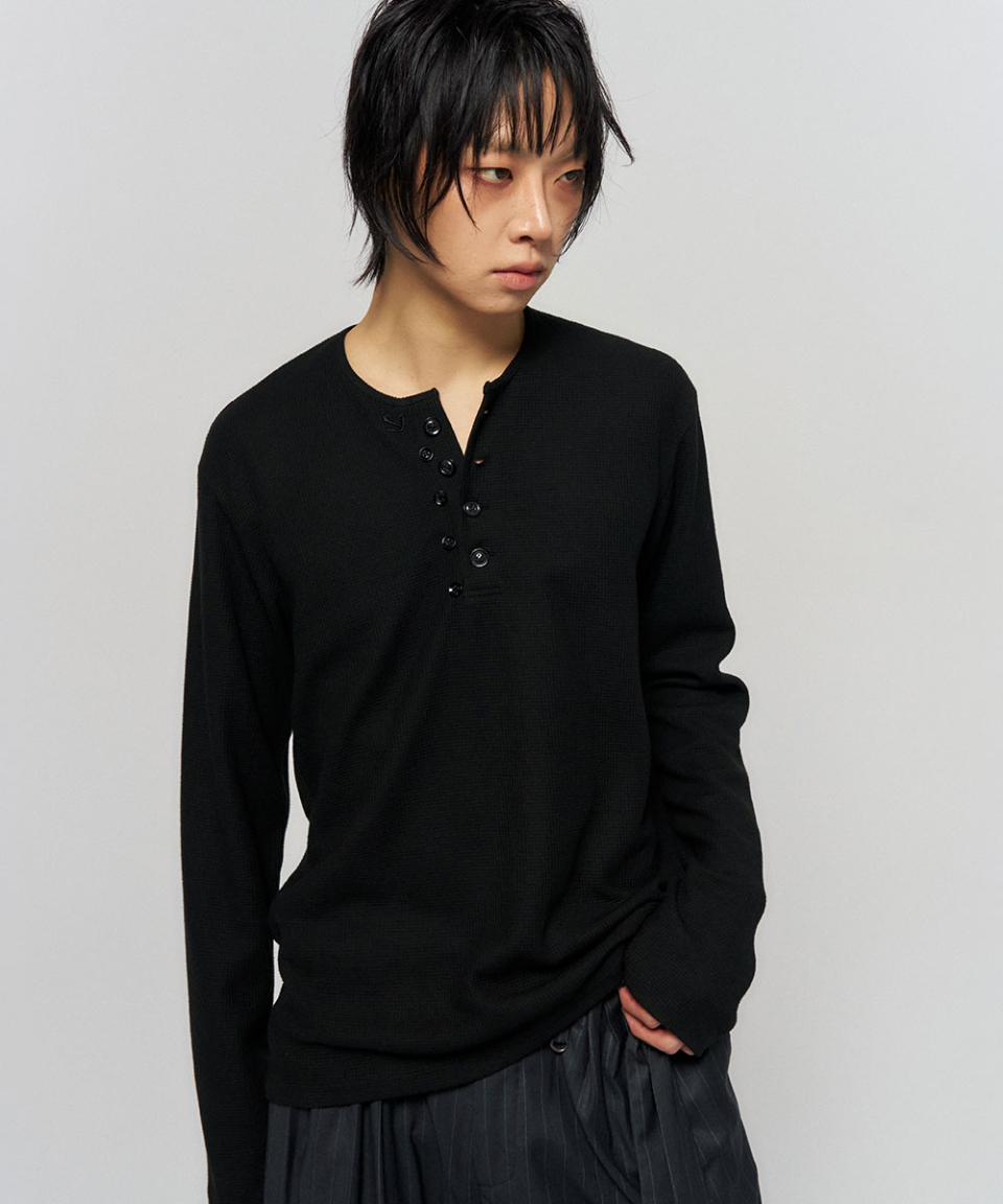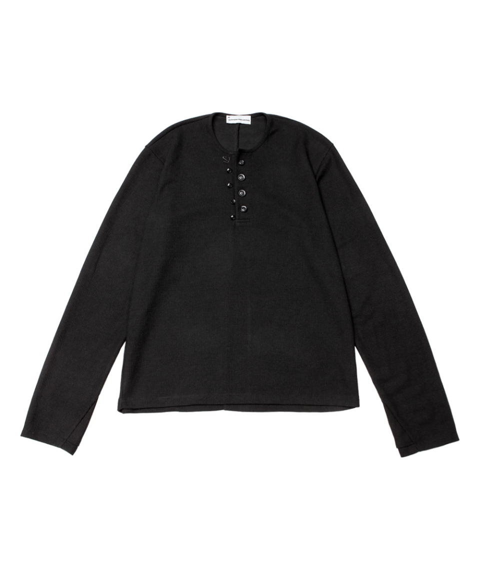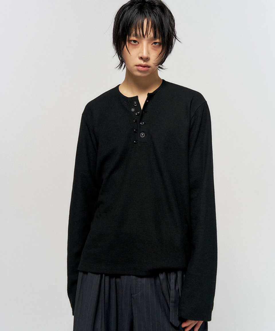 BUTTON THERMAL HENLEY NECK SHIRT BLACK