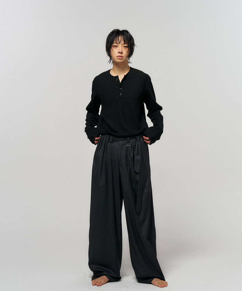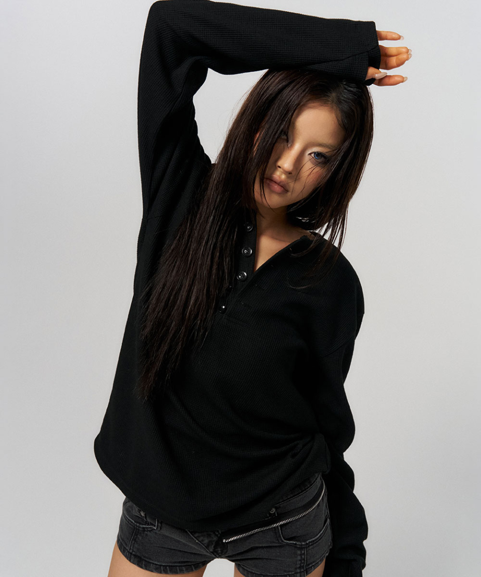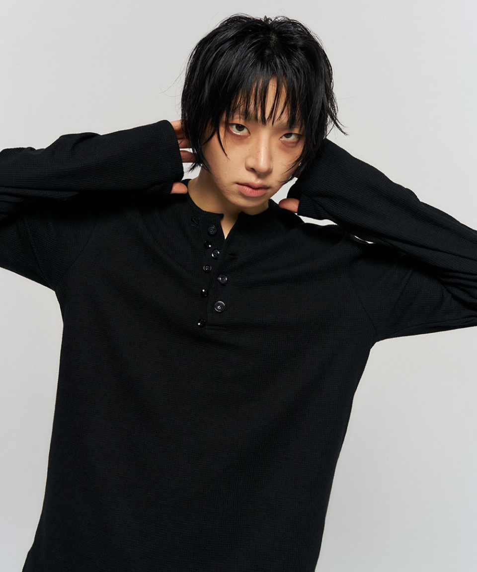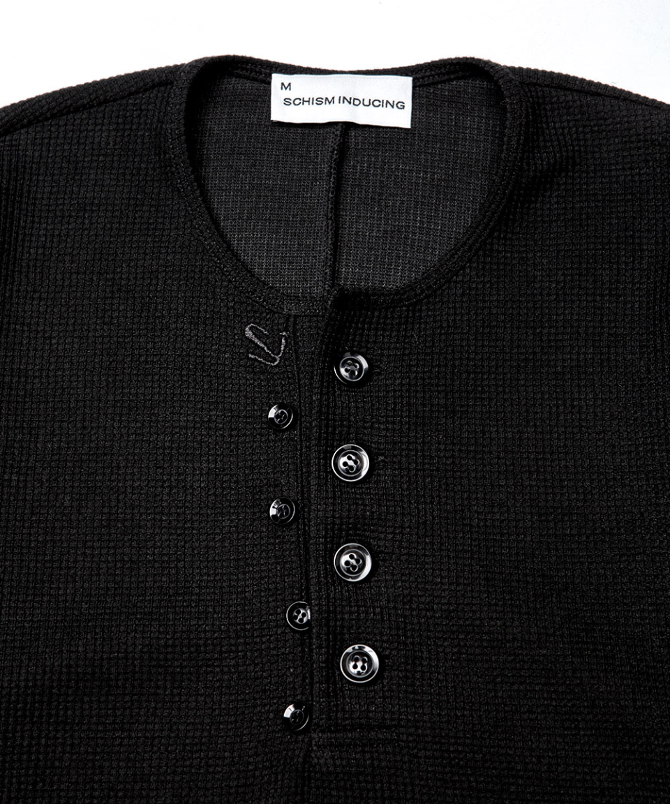 BUTTON THERMAL HENLEY NECK SHIRT BLACK