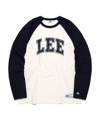 컬리지 로고 래글런 긴팔 티셔츠 네이비