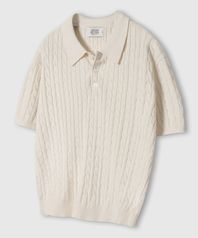 오버핏 워셔블 카라넥 케이블 반팔 니트 [아이보리]
