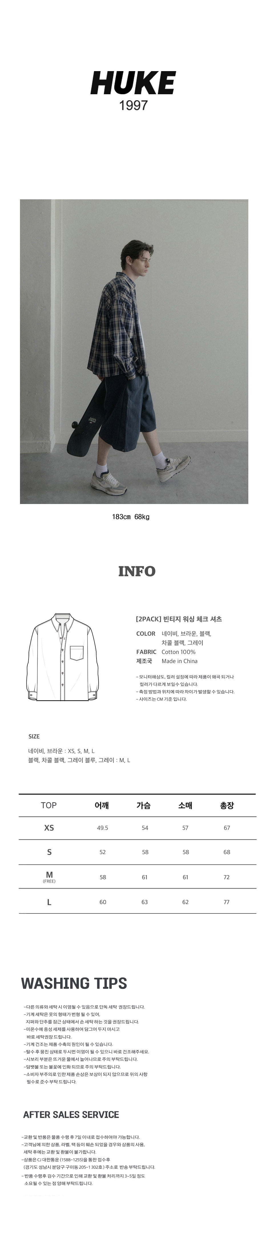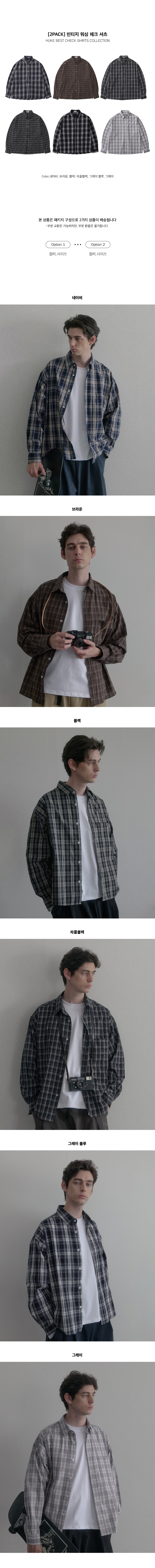 [2PACK] 빈티지 워싱 체크 셔츠 6color