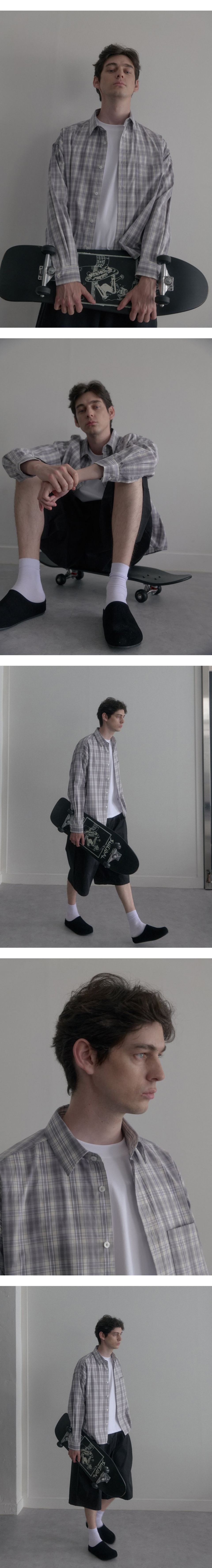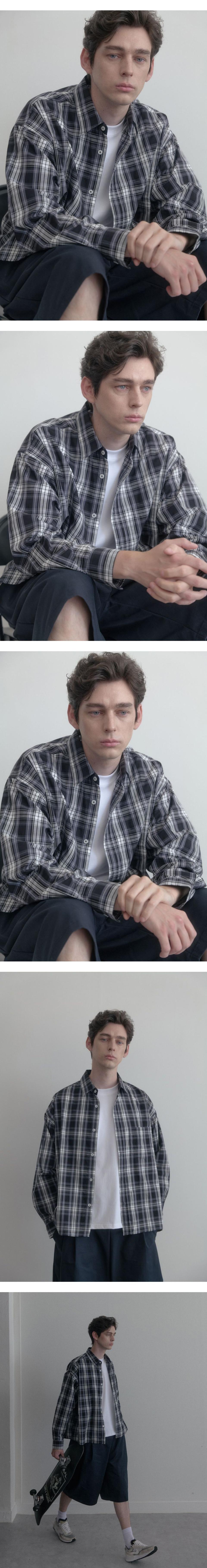 피그먼트 루즈핏 셔츠 진회색 SMLS4058