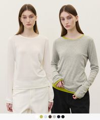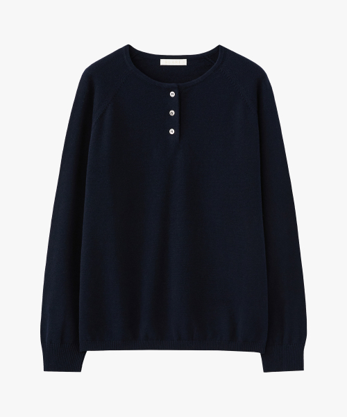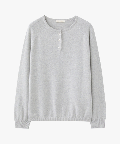(우먼)코튼 캐시 헨리넥 슬리브 니트 - 3 COLOR