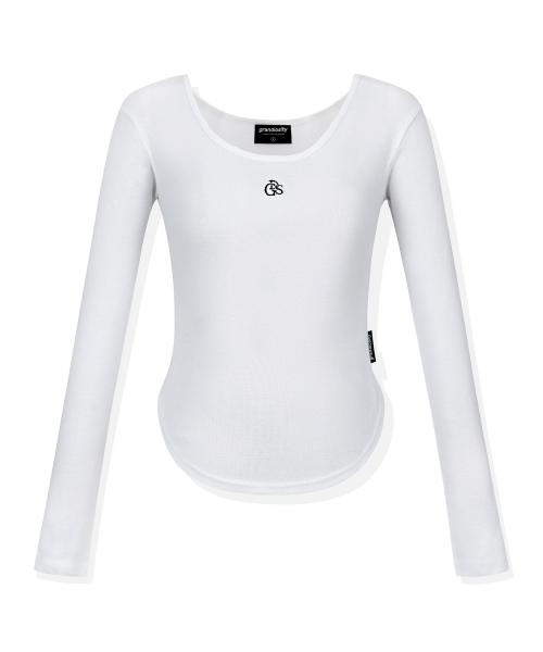 우먼 소프트 슬림 유넥 긴팔 티셔츠 (화이트)
