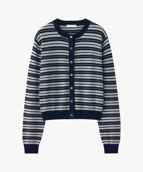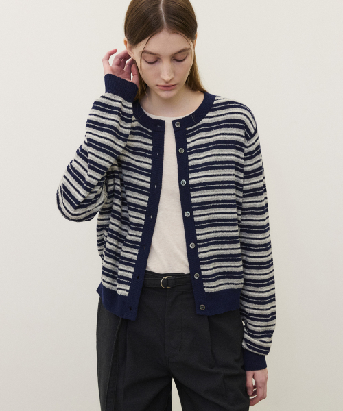 (우먼)코튼 부클 ST 가디건 네이비