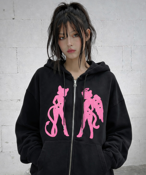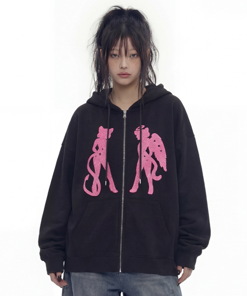 [UNISEX]CAT GEL 후드집업_BLACK