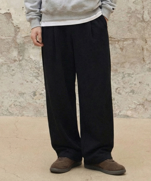 원턱 와이드 스웨트 팬츠 [블랙]