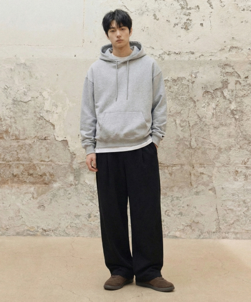 (기모)원턱 와이드 스웨트 팬츠 [그레이]