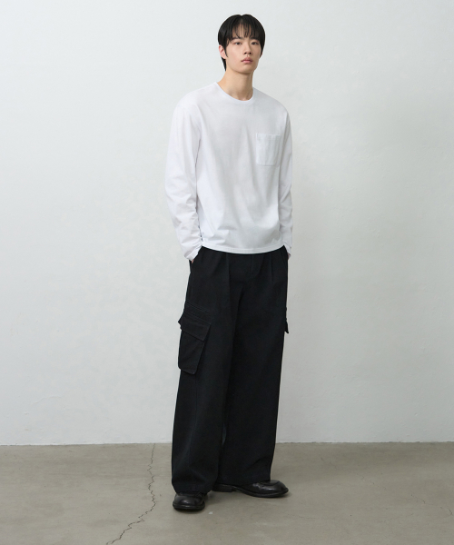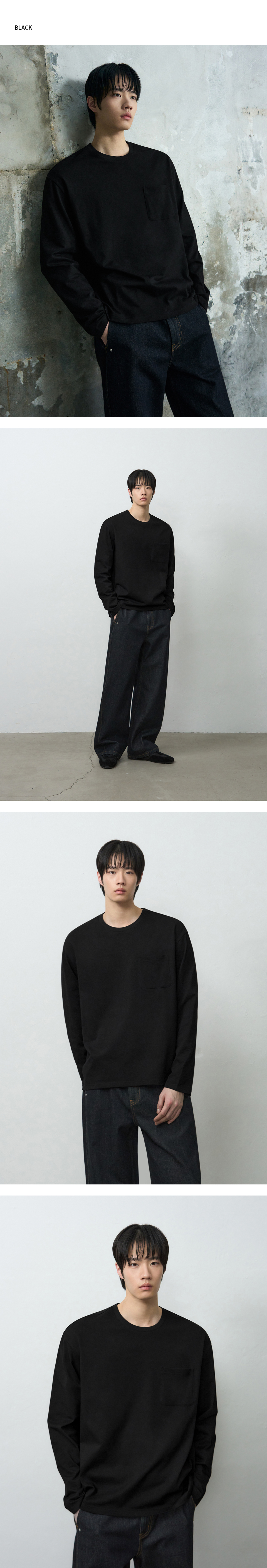 헤일 코튼 포켓 롱 슬리브 티셔츠 [BLACK]
