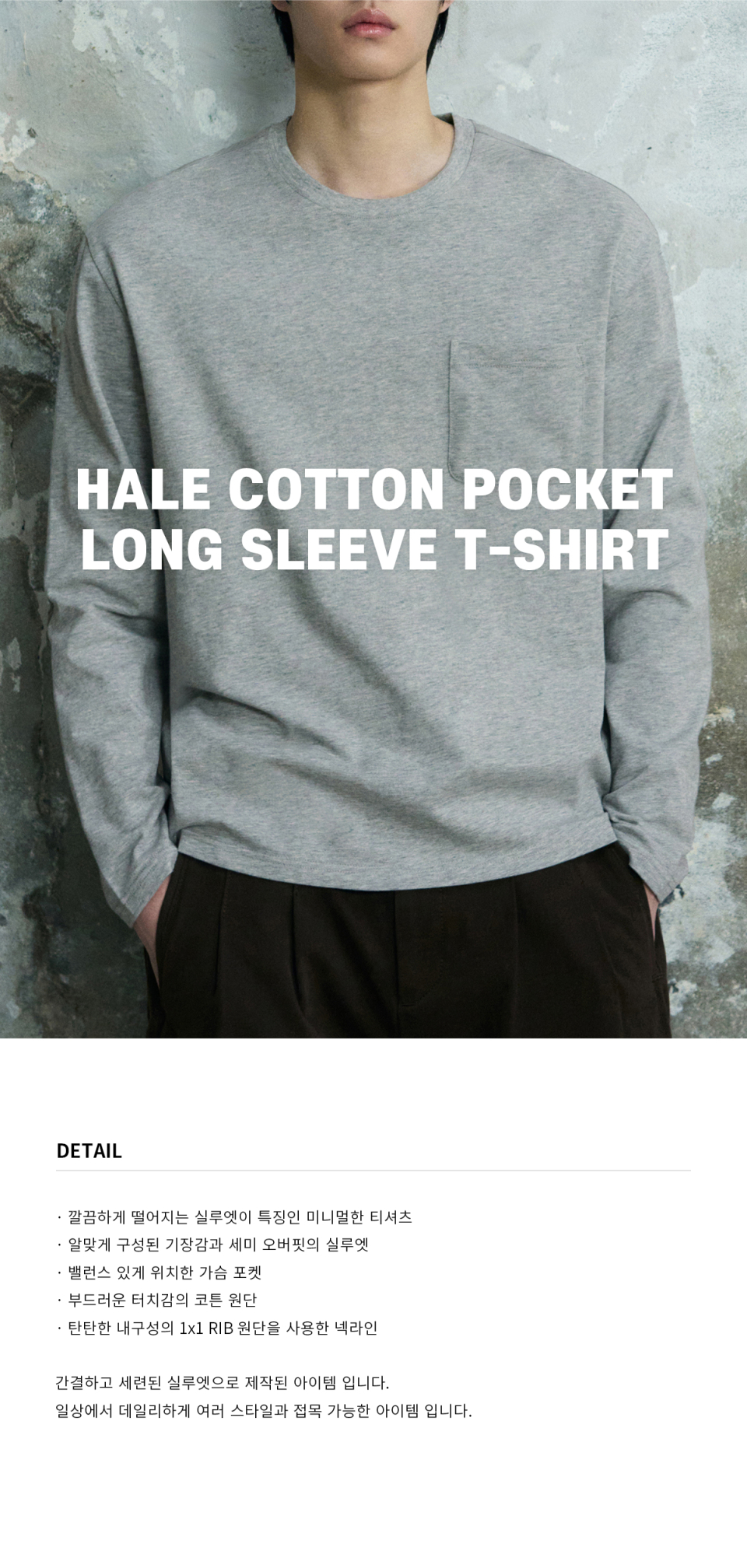 헤일 코튼 포켓 롱 슬리브 티셔츠 [M.GREY]