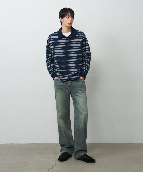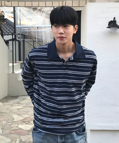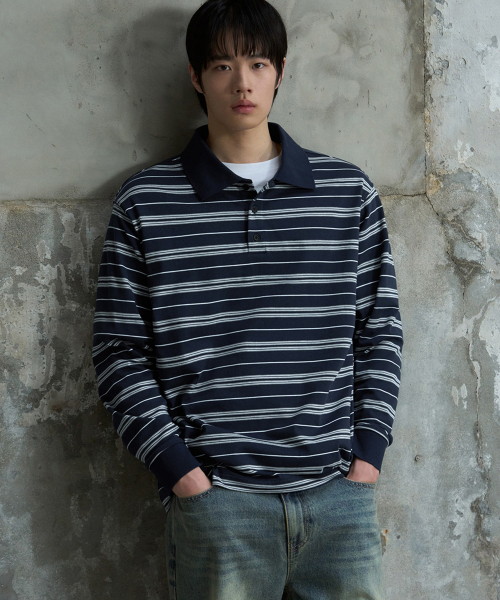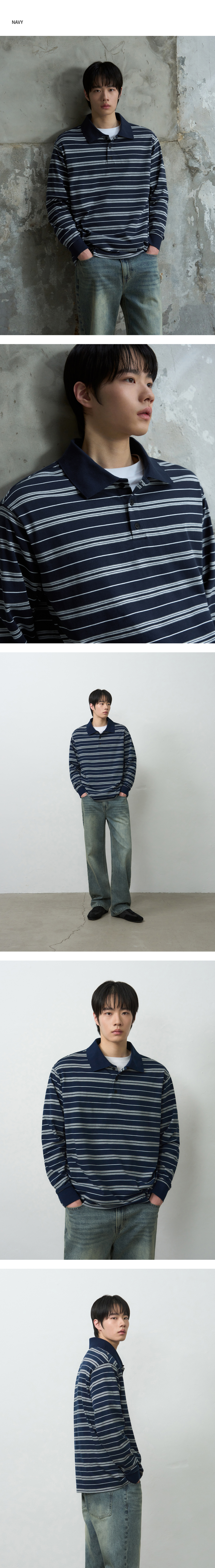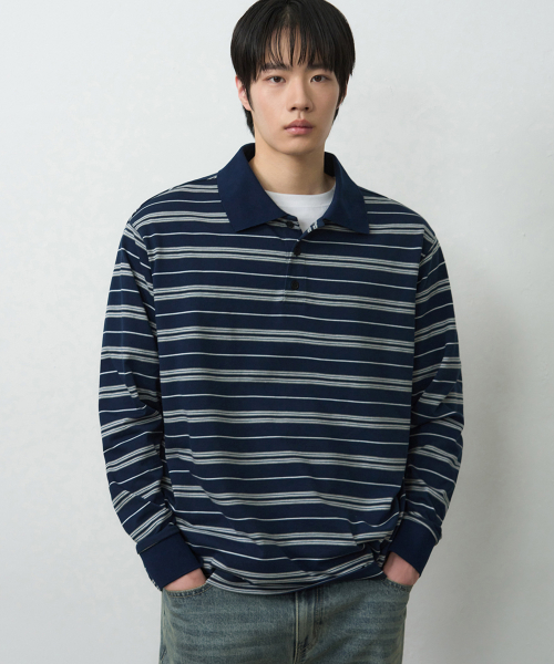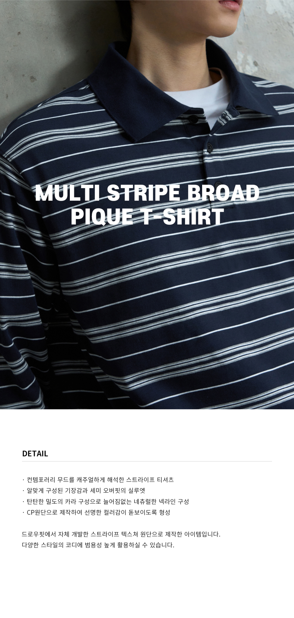 멀티 스트라이프 브로드 피케 티셔츠 [NAVY]