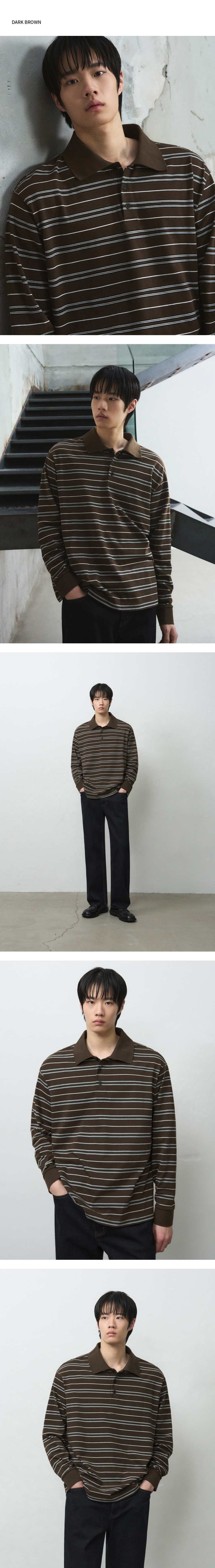 콘트라스트 멀티 스트라이프 롱 슬리브 [MELANGE GREY]