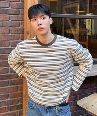 [ON]코튼 100% 멀티 스트라이프 오버핏 긴팔 티셔츠 - 2color