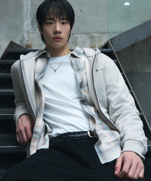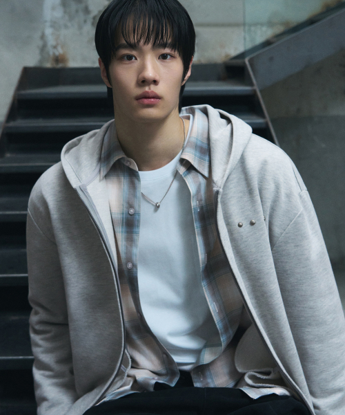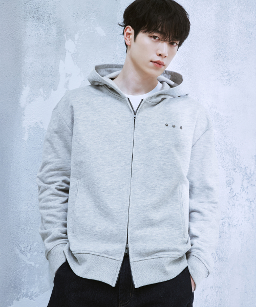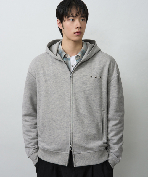 리벳 포인트 크롭 후드 집업 [MELANGE]