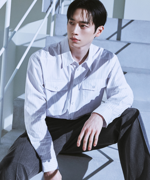[서강준 PICK] 세렌 오픈카라 스트라이프 셔츠 [BLACK]