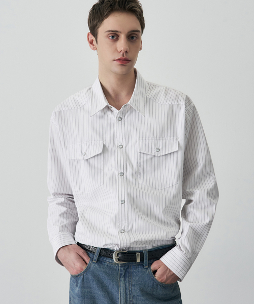 라일 스트라이프 웨스턴 셔츠 [WHITE]