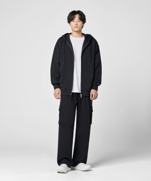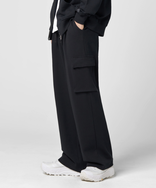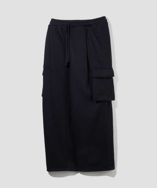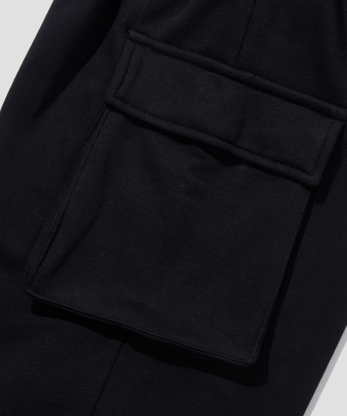 (기모)원턱 카고 스웨트 팬츠 [블랙]