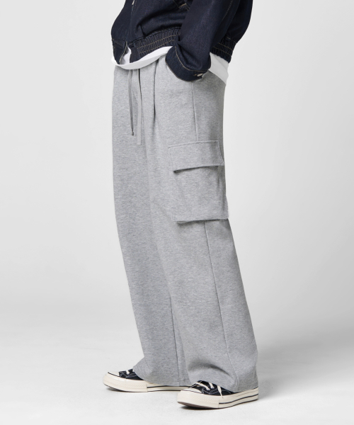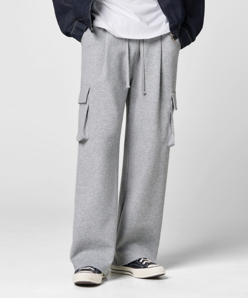 원턱 카고 스웨트 팬츠 [그레이]