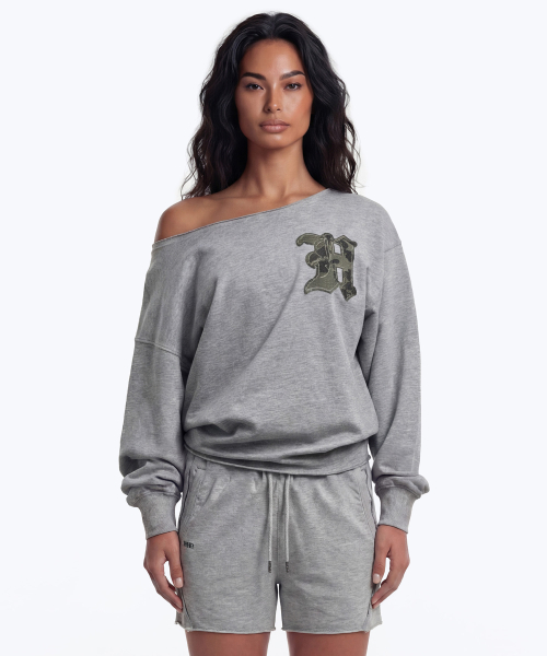 카모 오프숄더 스웨트 셔츠 (Melange Gray)