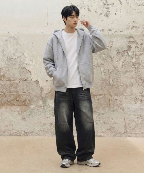 (기모)2_WAY 스웨트 후디드 집업 [그레이]
