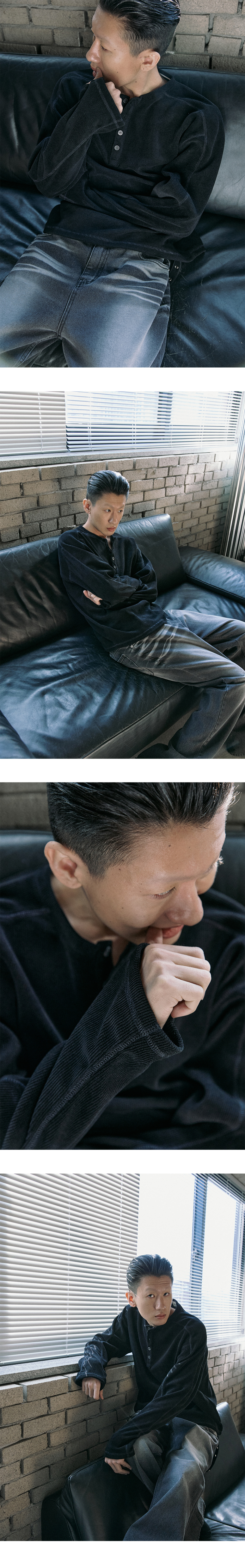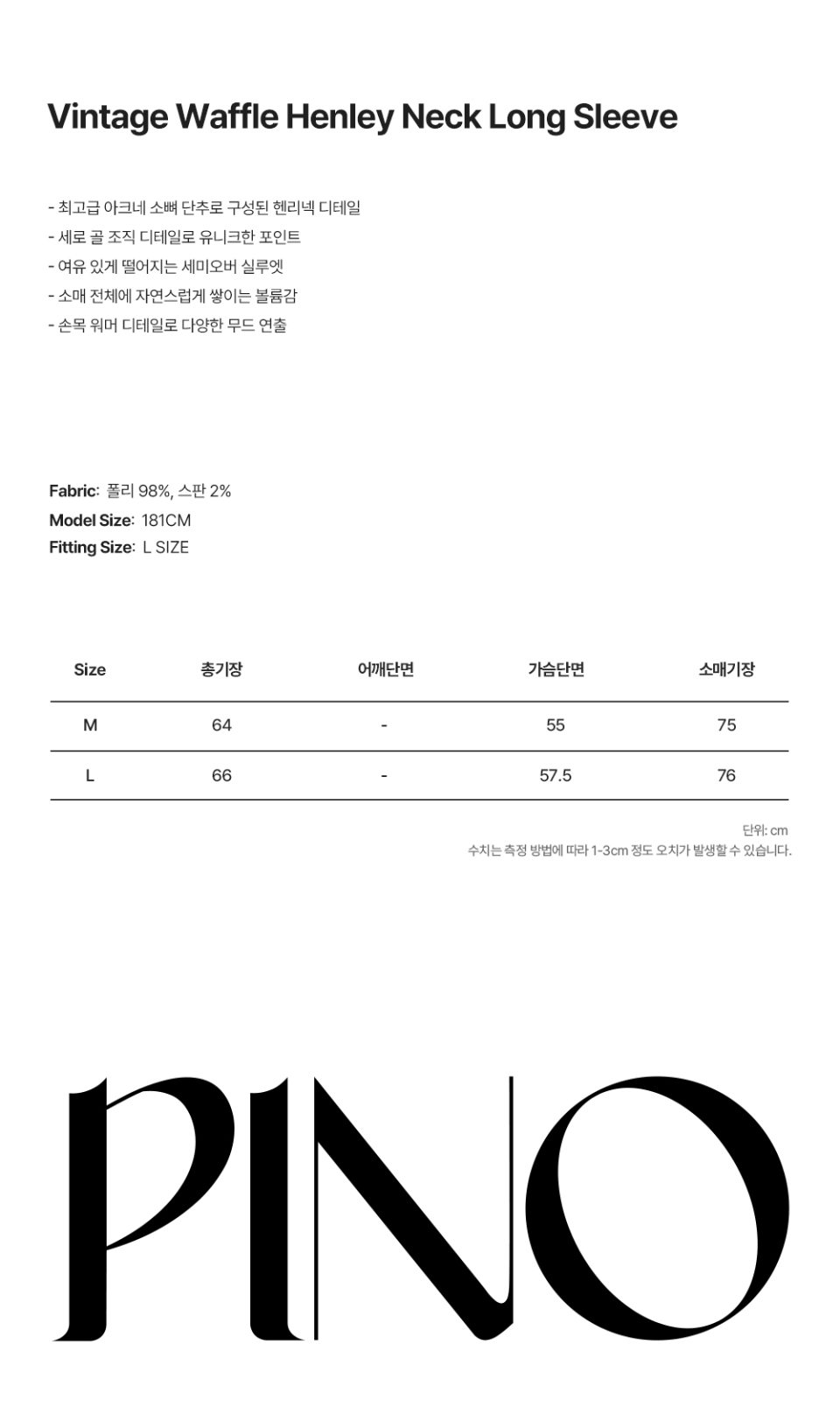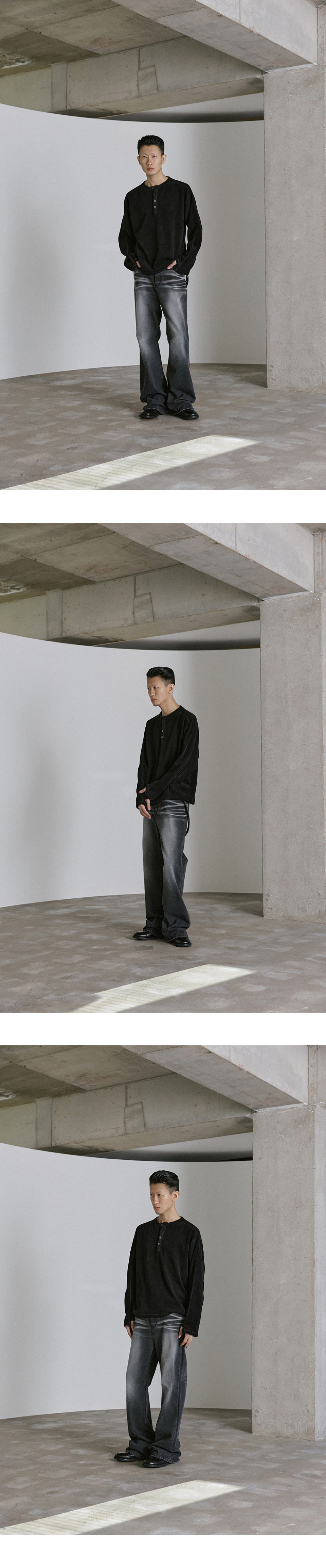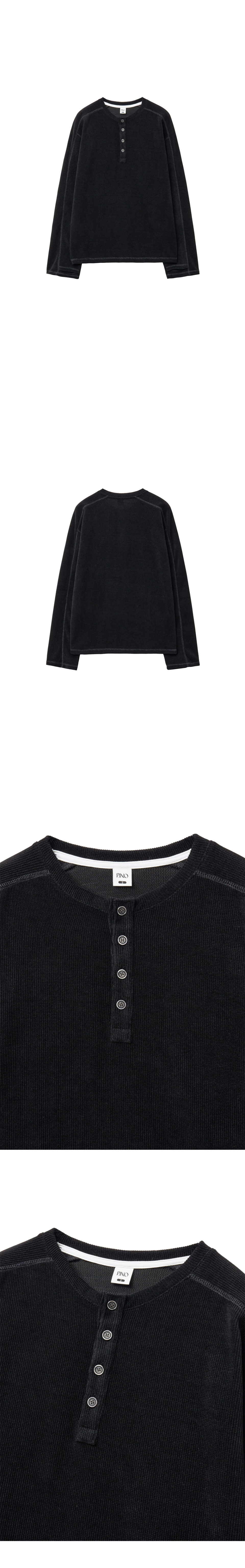 빈티지 와플 헨리넥 롱 슬리브 - 블랙