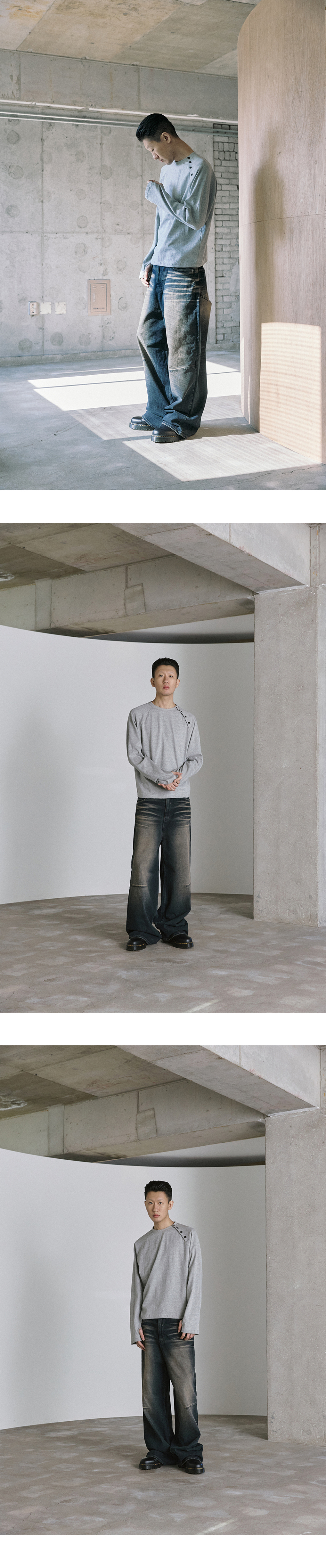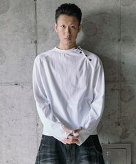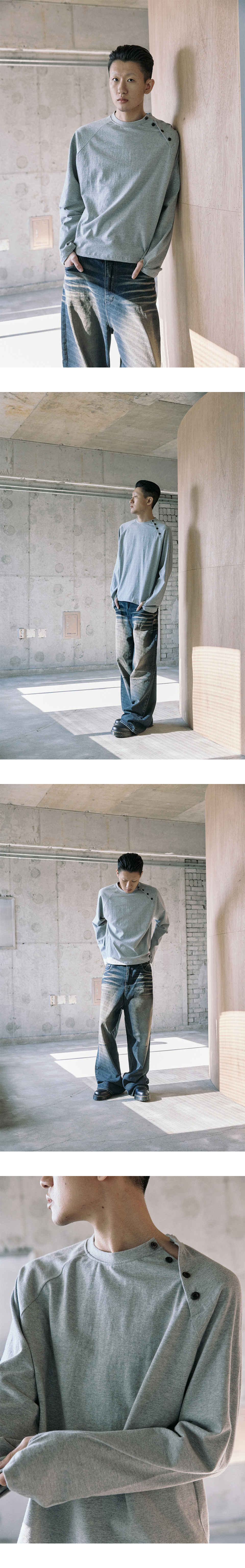 코튼 스냅 롱 슬리브 - 멜란지