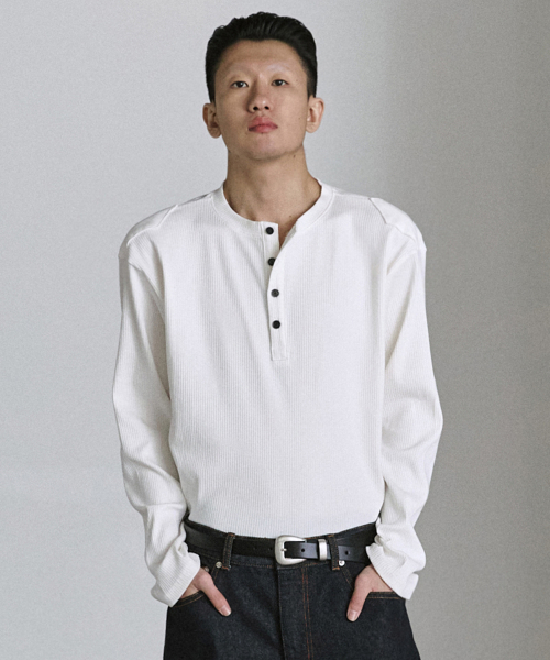 소프트 웨스턴 리브드 롱 슬리브 - 아이보리