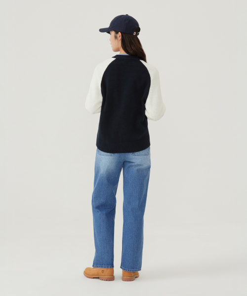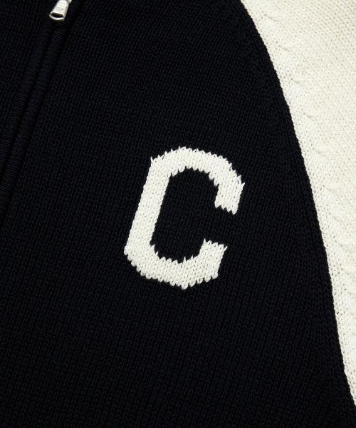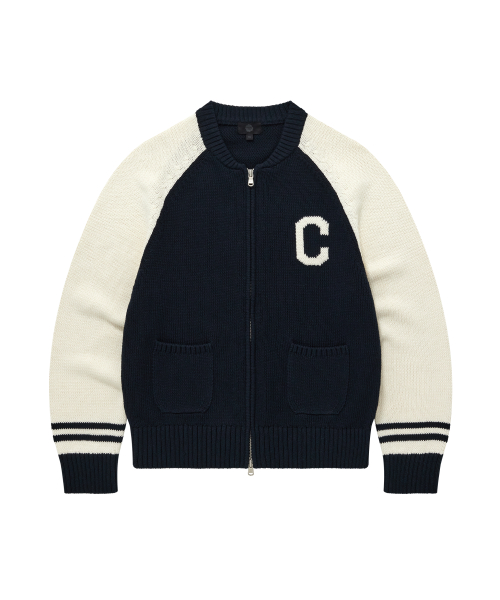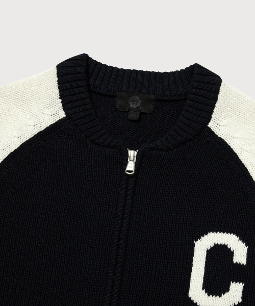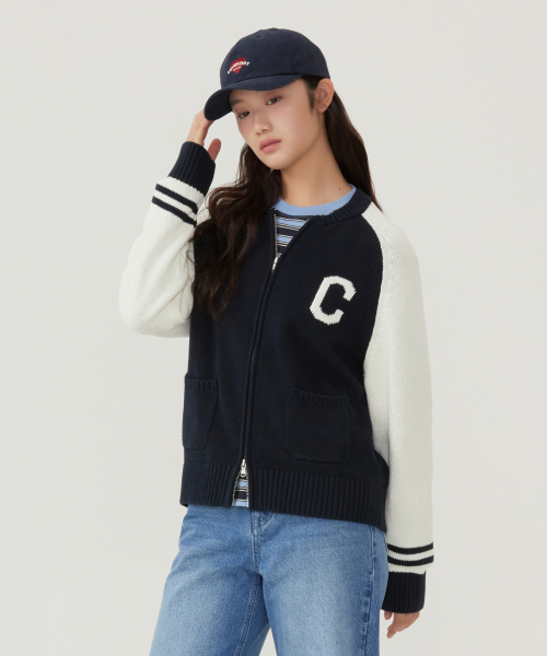 우먼 C 로고 바시티 집업 가디건 네이비