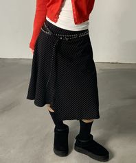 핀스트라이프 언발 미디 스커트 블랙