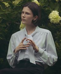 Emma shirring scarf shirt_Sky blue