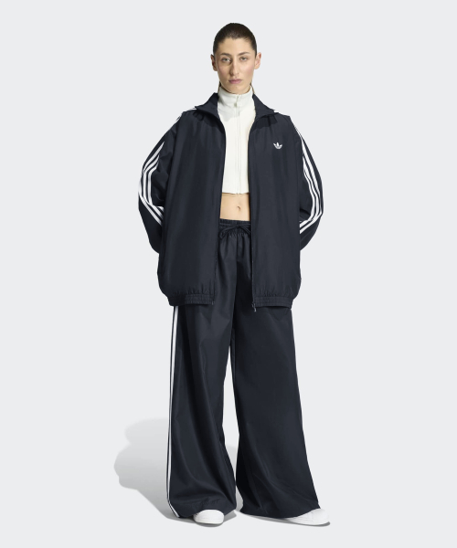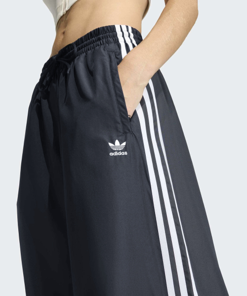 새틴 와이드 레그 트랙 팬츠 - 블랙:화이트 / IU2520