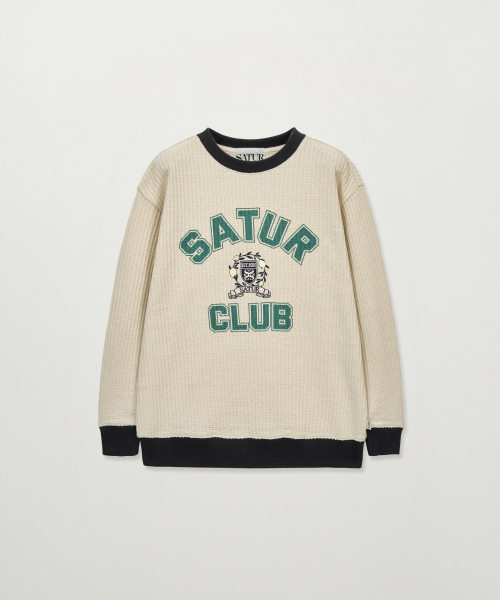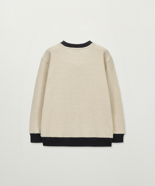 (K) 컬러 블록 와플 스웨트셔츠 크림