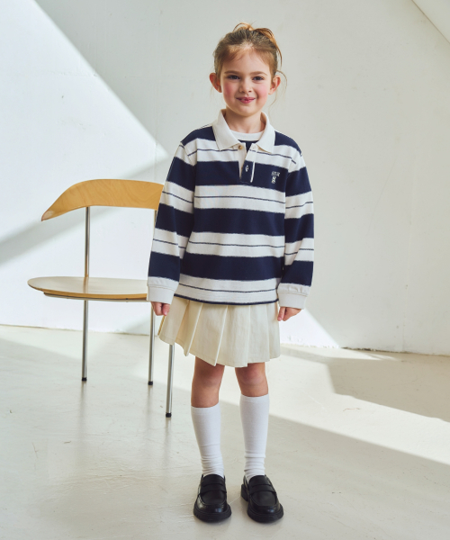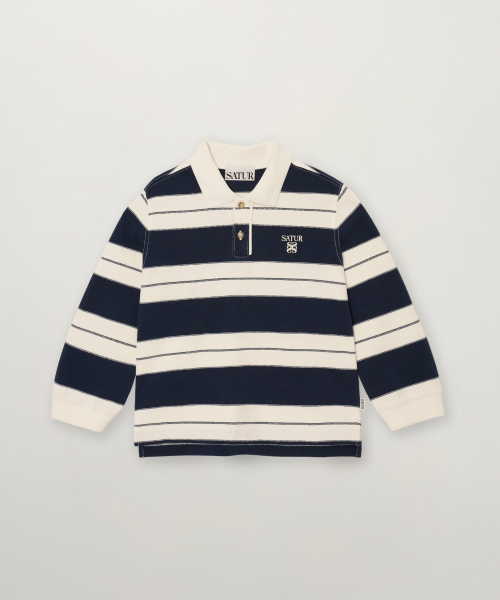 (K) 아페로 스트라이프 피케 롱 슬리브 네이비