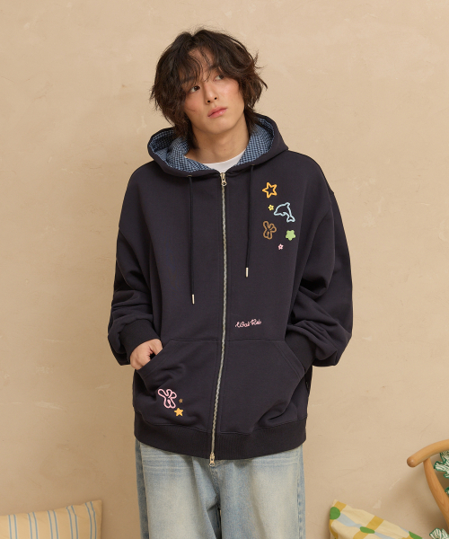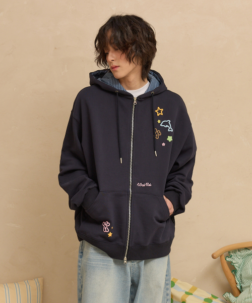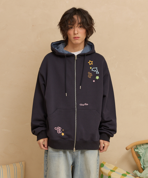 스타 돌핀 엠보 그래픽 후드 집업 네이비