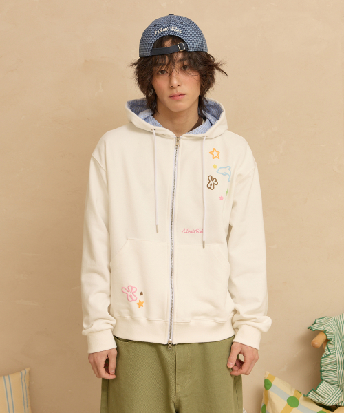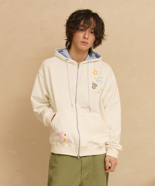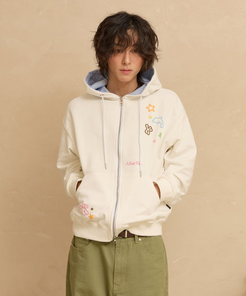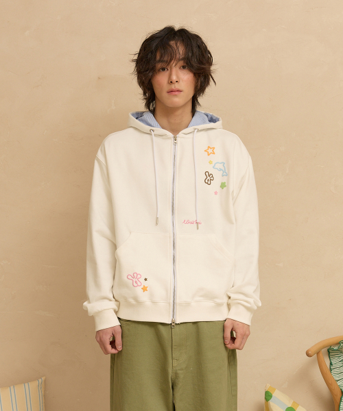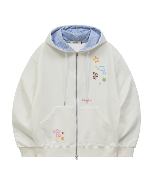 스타 돌핀 엠보 그래픽 후드 집업 아이보리