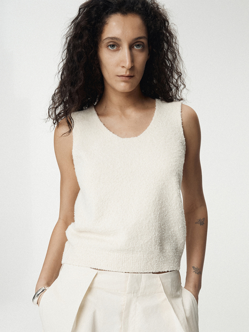 Italian Souffle Cotton Yarn U Neck Vest_Cotton