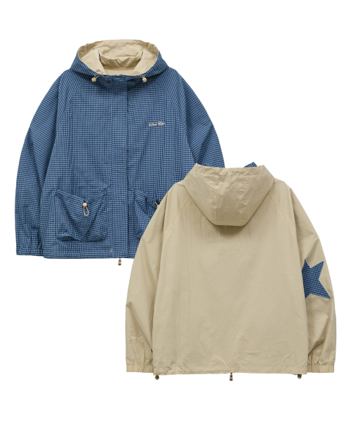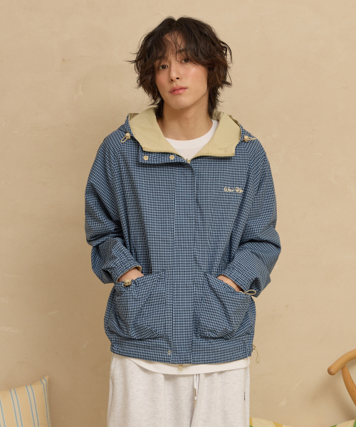 리버시블 체크 윈드브레이커 블루
