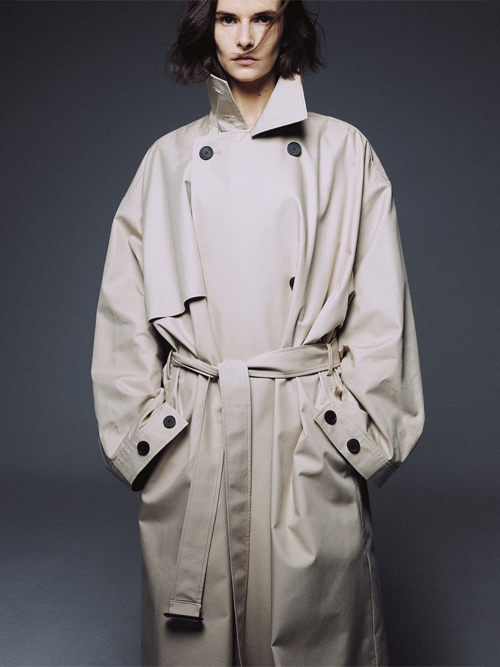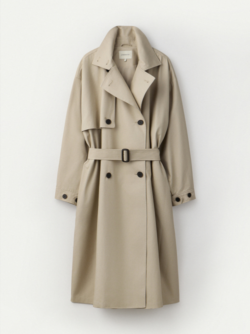 Convertible Collar Oversized Trench Coat_Travertine
