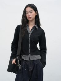 적당한 깊이의 단정한 V넥 라인이 넥 라인을 깔끔하게 정돈합니다.