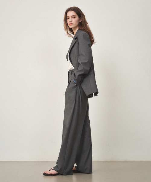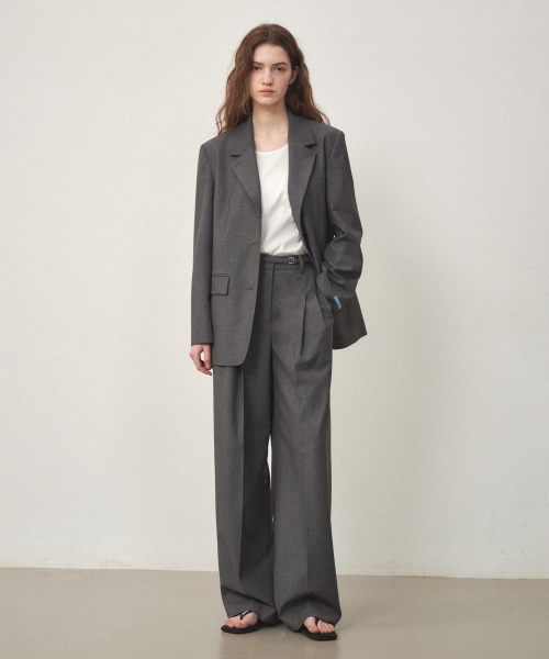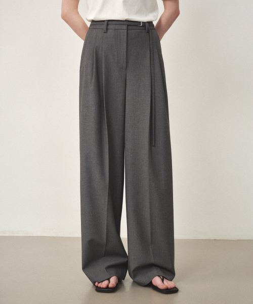 울 벨티드 와이드 슬랙스 차콜