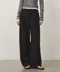 울 벨티드 와이드 슬랙스 블랙
