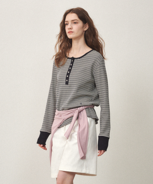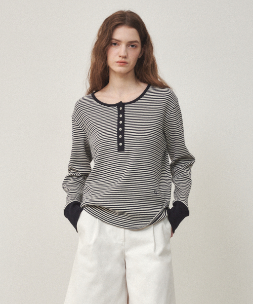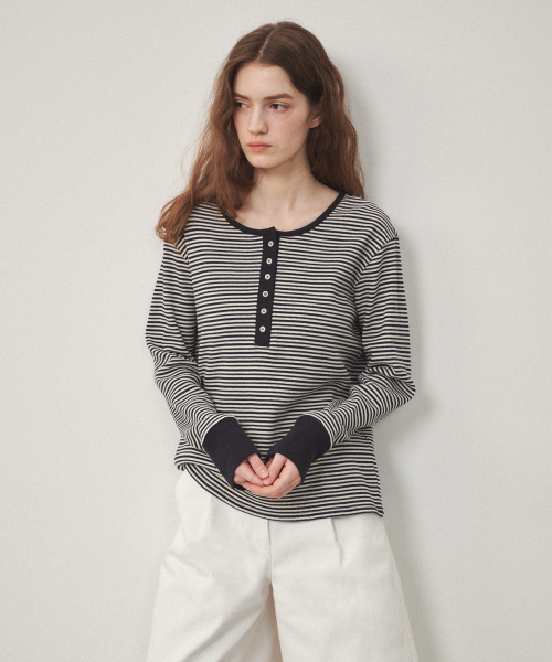 헨리넥 골지 티셔츠 네이비
