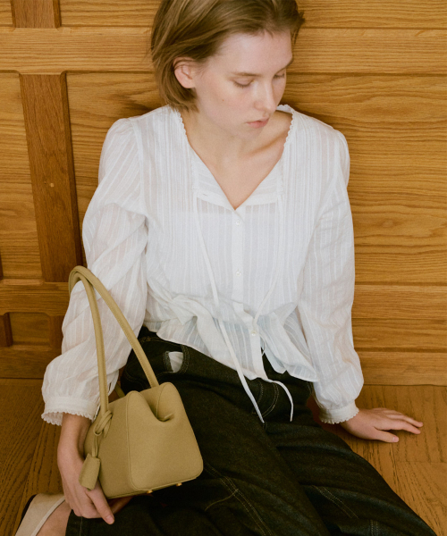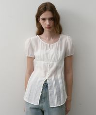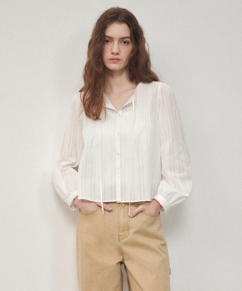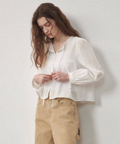 핀턱 레이스 블라우스 롱슬리브 아이보리