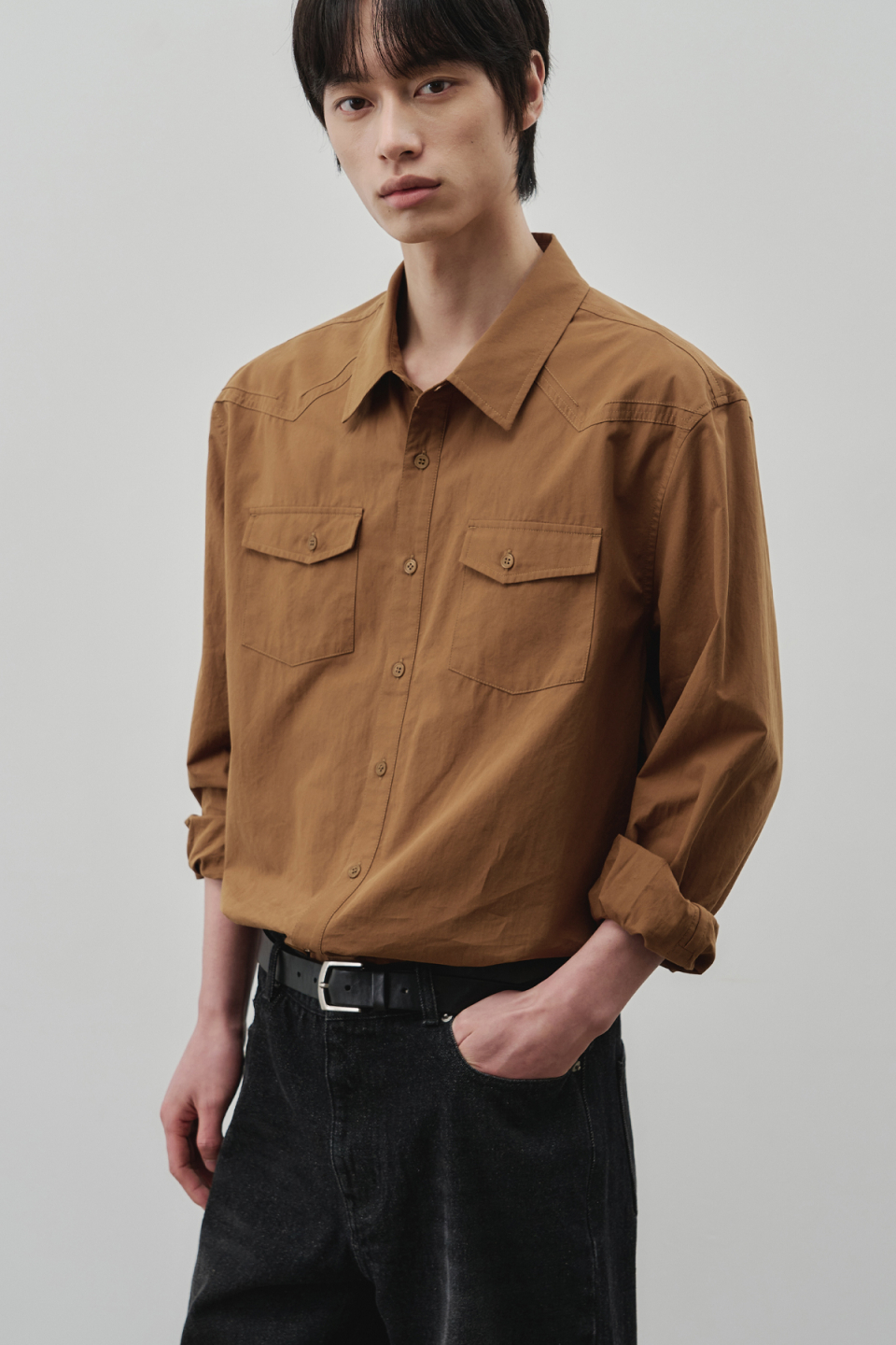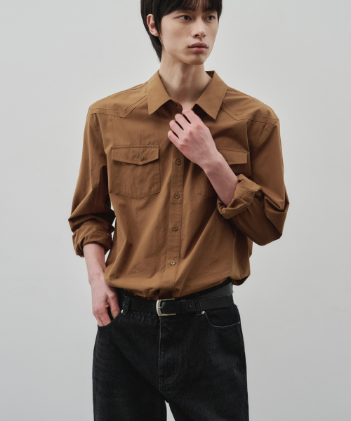 웨스턴 리니어 솔리드 크롭 셔츠 [브라운]