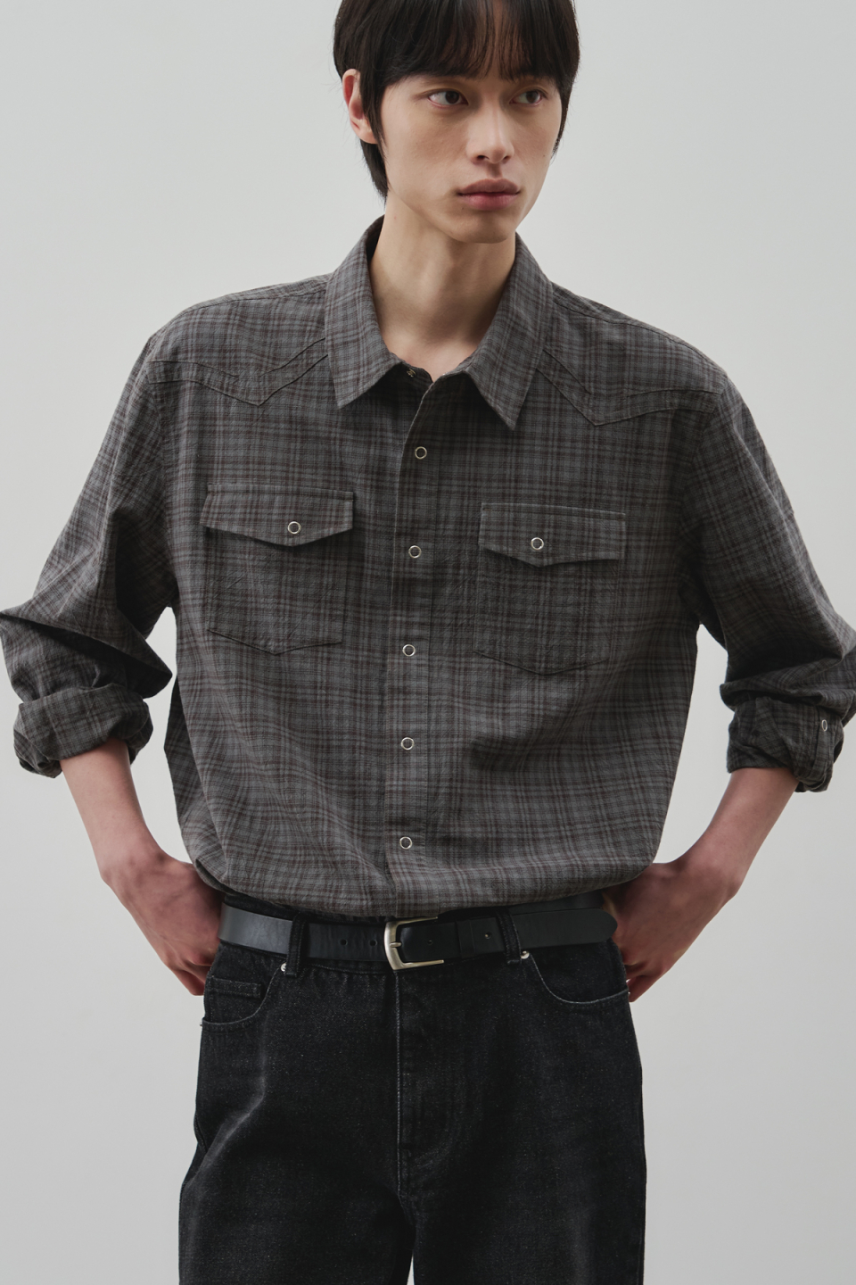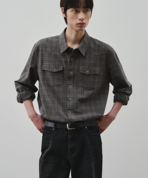 웨스턴 리니어 체크 크롭 셔츠 [그레이]