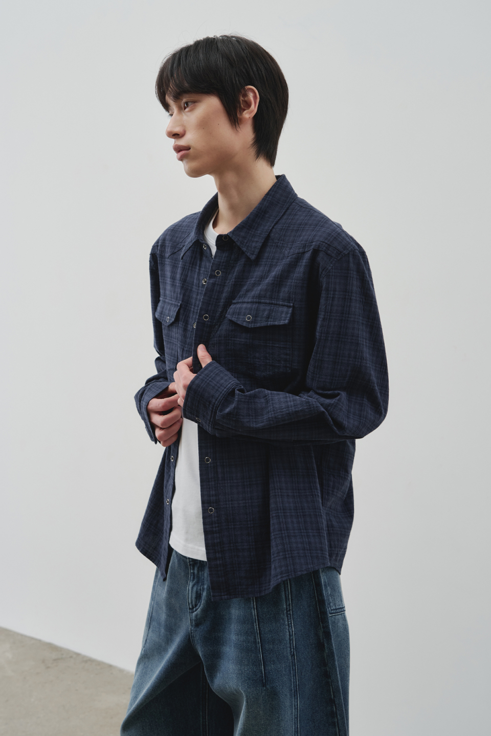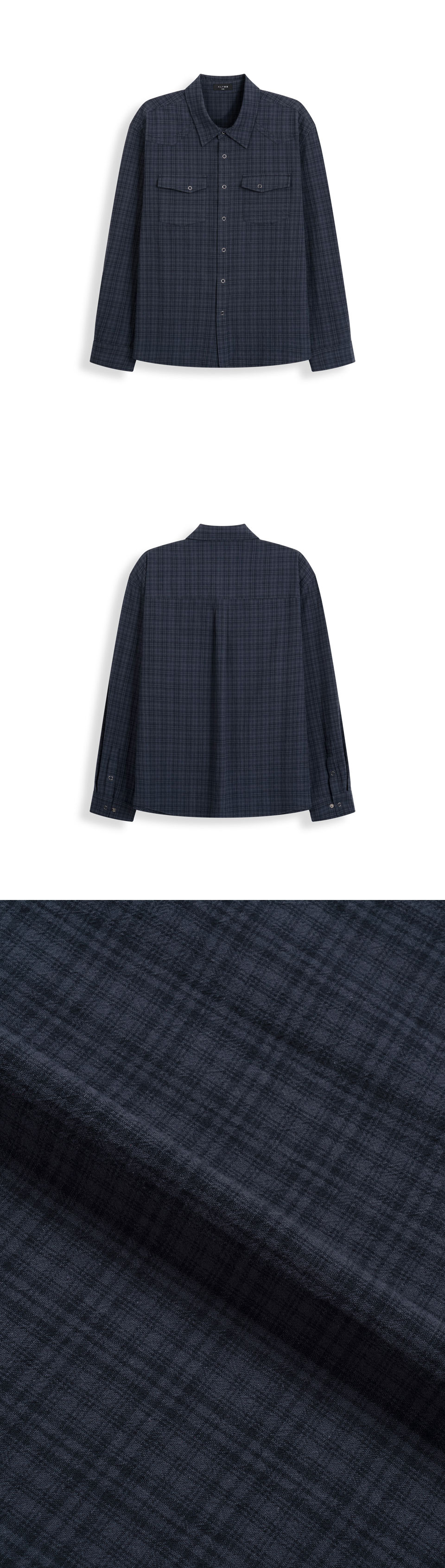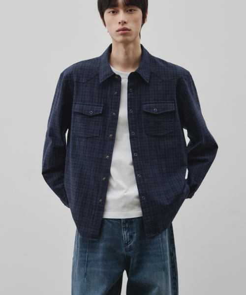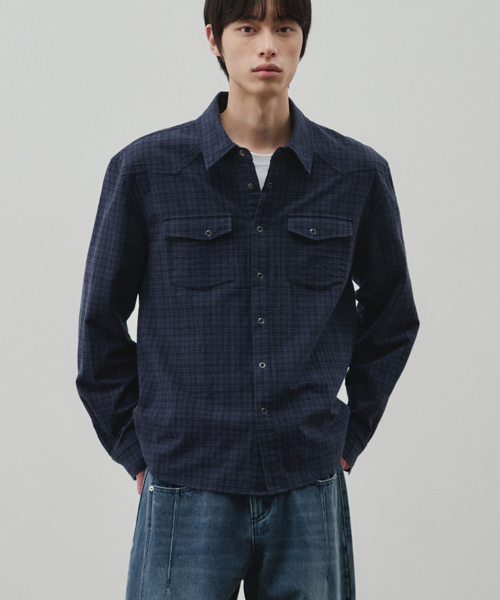 웨스턴 리니어 체크 크롭 셔츠 [네이비]